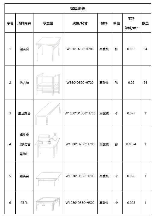 (3)家具采用中國古法傳統(tǒng)工藝且仿宋款式,家具示意圖僅供參考,細節(jié)內(nèi)容由各供應(yīng)商自行進行深化設(shè)計。清單如下: