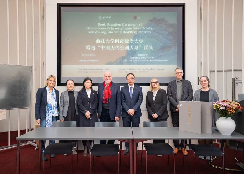 10月15日,浙江大學(xué)向海德堡大學(xué)贈(zèng)送“中國(guó)歷代繪畫(huà)大系”儀式在海德堡大學(xué)亞洲與跨文化研究中心圖書(shū)館(以下簡(jiǎn)稱(chēng)CATS圖書(shū)館)舉行。浙江大學(xué)出版社黨委書(shū)記、董事長(zhǎng)吳晨,浙江大學(xué)出版...