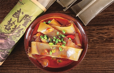 紅油翻滾的火鍋是武隆苕粉最完美的伴侶,鮮辣與筋道融為一體,被一向?qū)χ乜谖睹朗碂o比挑剔的重慶人視為,唯一可以與毛肚和鴨腸平起平坐的“素菜”。樸實無華的武隆苕粉,不僅成為了餐桌上的王者,更是承載了重慶人的美食記憶。(張再行整理)