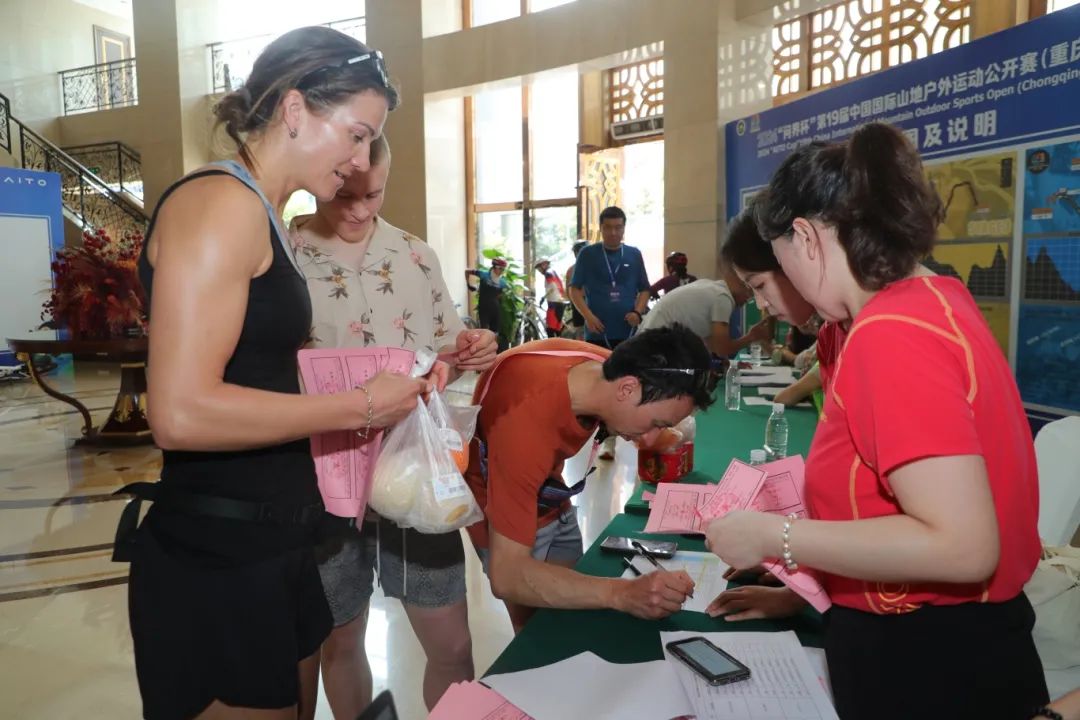記者在現(xiàn)場看到,來自俄羅斯、新西蘭、法國、澳大利亞等十幾個國家和地區(qū),以及國內(nèi)代表隊共40余支隊伍陸續(xù)來到報到現(xiàn)場,領(lǐng)取自己的號牌、服裝和物資。其中,不乏許多參加過多屆武隆山地戶外運動公開賽的熟悉身影。