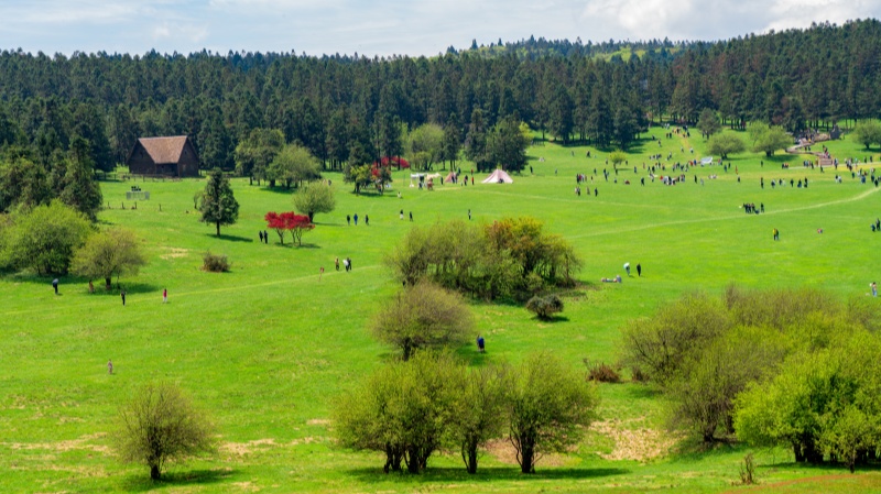 此次徒步大會以巴爾曼酒店為起點,途徑碧綠的延綿草原,歷經山路崎嶇的山林小道,最終抵達仙女山木梯子,徒步路線全程長達8公里。
