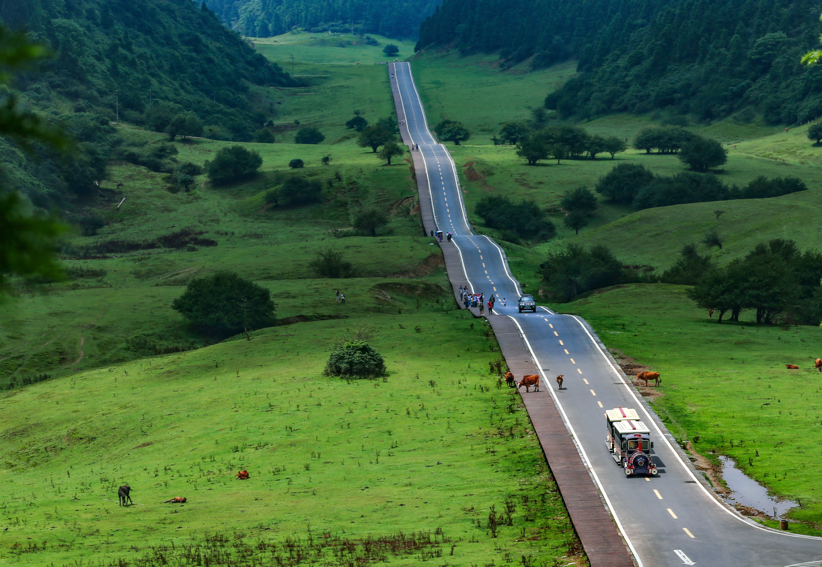 這是重慶公認(rèn)的最美觀光公路,是通向仙女山大草原的景觀大道,公路高低起伏,草原如綠毯綿延向遠(yuǎn)方,駕車飛馳,真正體驗(yàn)一回“人在畫中游、車在景中走”是什么感覺。
