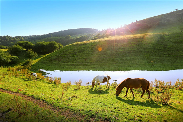 飽餐完畢,我們直接開車到了海拔更高的國家5A級景區(qū)、國家森林公園仙女山。一路上云霧繞山澗,時而清晰,時而煙霧彌漫,真不愧為“仙”女山。經(jīng)過仙女山門票房后,又開了10來分鐘我們來到了仙女山木梯子接待中心,車還沒停穩(wěn),孩子們看到一輛輛紅色的小火車,興奮的尖叫起來。坐上小火車,沿途林海、奇峰、草場盡收眼底。三月里春回大地,綠意盎然,馬兒靜謐的吃著青草。騎馬、坐卡丁車、射箭、草原上奔跑、大人拍照,孩子們玩得不亦樂乎。玩累了,停下來安逸舒適的躺在草原上,呼吸著清晰的空氣,小憩一會,真的可以忘卻生活、工作中的一切煩惱。眨眼的功夫,已經(jīng)是下午5點左右了,雖然有些舍不得走,但是我們還是得回到仙女鎮(zhèn)上。