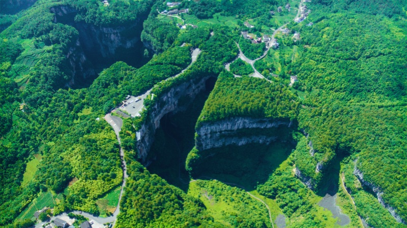 天生三橋是國家5A級景區(qū)、世界自然遺產(chǎn)地。天龍橋、黑龍橋、青龍橋三座天然石橋橫跨天地之間,中間形成兩個天坑,造就了“三橋夾兩坑”的世界喀斯特奇觀,仿若仙境遺落人間的奇景。