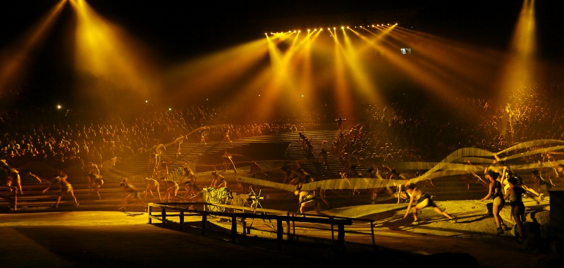 《印象武隆》是一場由“印象鐵三角”張藝謀、王潮歌、樊躍聯(lián)合打造的大型山水實(shí)景歌會,演出囊括武隆巴人遺風(fēng)、山水遺情、歷史演進(jìn)的獨(dú)特文化資源,將“號子”、“哭嫁”等傳承千年卻即將消失的民俗形式以及“棒棒”、“滑竿”“麻辣火鍋”等最具重慶特色的人文元素相融合,通過70分鐘實(shí)景歌會的方式再現(xiàn)巴渝地區(qū)獨(dú)特的“號子”文化,在國內(nèi)影響力非凡,多次榮登《中國農(nóng)民歌會》、《經(jīng)典永流傳》等央視舞臺。