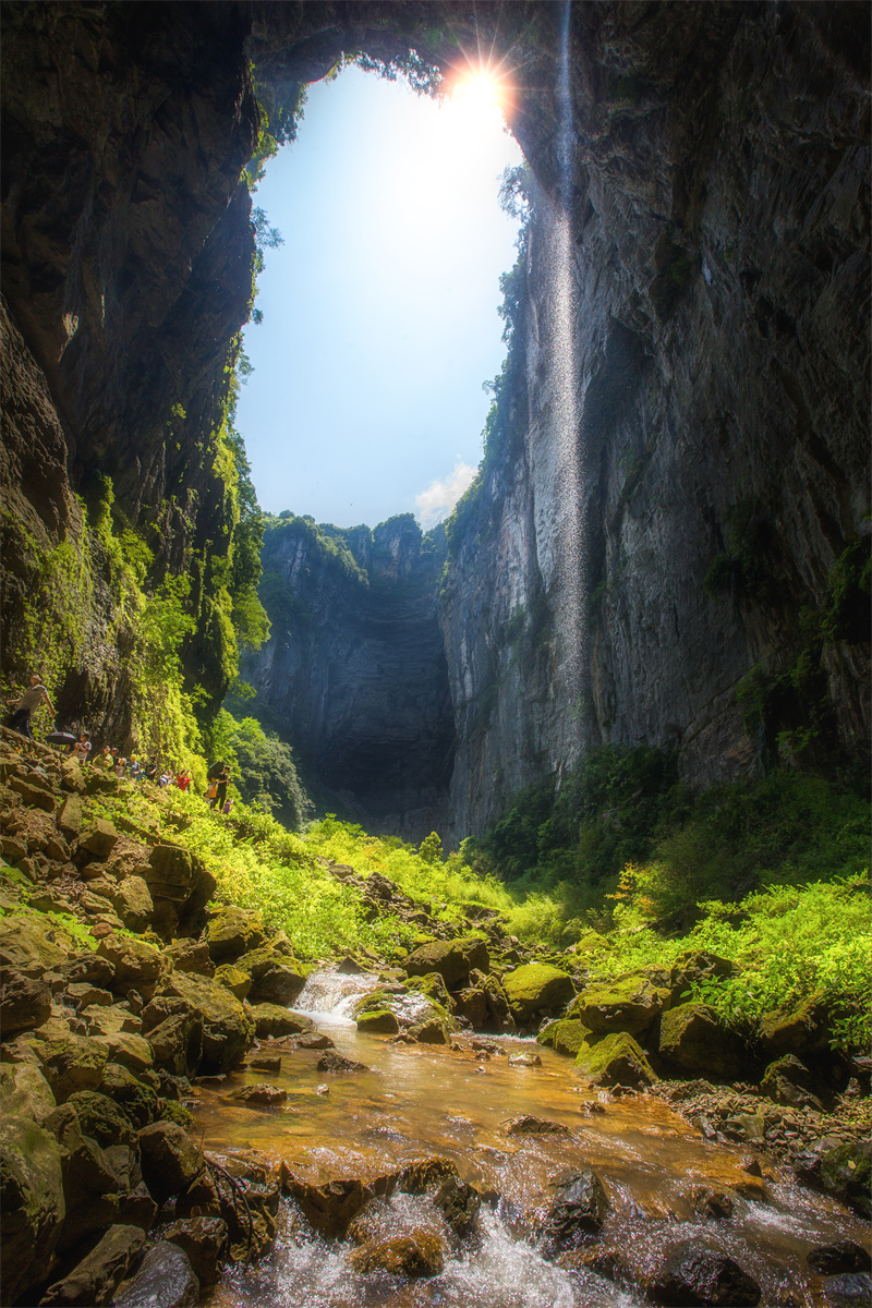 天生三橋是中國南方喀斯特世界自然遺產(chǎn)核心景區(qū),國家5A級景區(qū),國家地質(zhì)公園,世界自然遺產(chǎn)地,屬典型的喀斯特地貌景觀。春日里的天生三橋,峰林環(huán)繞,綠意盎然。橋下流水潺潺,與春日暖陽相互交織。天坑內(nèi)繁花似錦,芬芳四溢。大自然的鬼斧神工與春日生機完美融合,構(gòu)成一幅絕美的山水畫卷,令人沉醉其間。
