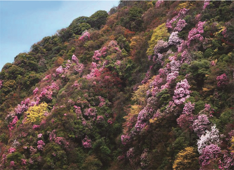 芙蓉江是中國國家風景名勝區(qū),國家4A級景區(qū),大容量峽谷生態(tài)景觀。芙蓉江的春天,江水潺潺解凍,兩岸青山漸披綠裝。繁花似錦點綴江畔,樹葉依依隨風搖曳。暖陽輕灑江面,波光粼粼??諝庵袕浡嗤练曳寂c草木清香,一片生機勃勃,宛如人間仙境,醉美了整個春天。