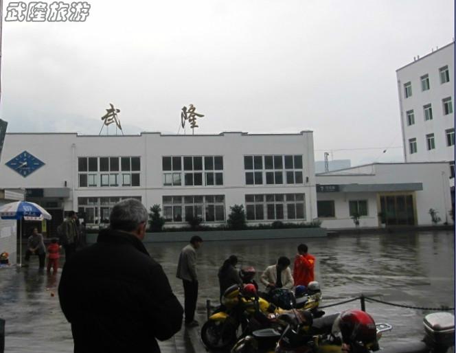 到武隆縣時(shí),小雨欣欣,霧氣繚繞。這個(gè)小縣城從這第一刻便給了我好感;這樣一個(gè)以旅游為業(yè)的地方,火車站前沒(méi)有嘈雜的拉客搶客的小販們,由于是新修縣城,人口少,樓房新,街道格外的干凈。出站口前便有開(kāi)往芙蓉洞和仙女鎮(zhèn)旅游接待中心的大面包車,人滿即走。站牌上也公示了從武隆前往各景區(qū)的里程數(shù)和交通工具收費(fèi)標(biāo)準(zhǔn),這點(diǎn)很好,有效避免了宰客的不良行為。