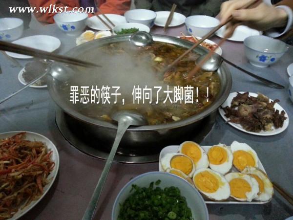 本食欲全無(wú),但一看到這一大鍋的大腳菌燉老母雞,大家立刻興奮起來。沒出息的我們狼吞虎咽地盛湯喝,結(jié)果個(gè)個(gè)都燙得呲牙咧嘴·——因?yàn)槭羌冋夏鸽u,油水很多,所以熱氣散的很慢。