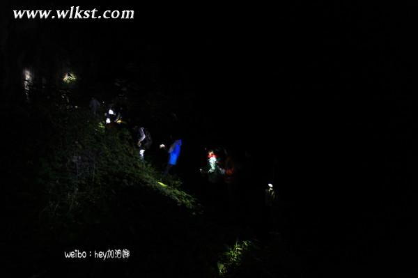村民大叔口中不遠(yuǎn)的距離,卻是我們最痛苦的一段回憶。走出山洞已晚上7點(diǎn)。漆黑的山林里只聽見昆蟲和青蛙的啼鳴。男士分別走在隊(duì)伍兩端,我們?cè)谑蛛姽鈨H能照亮的一小部分區(qū)域里慢慢前行。