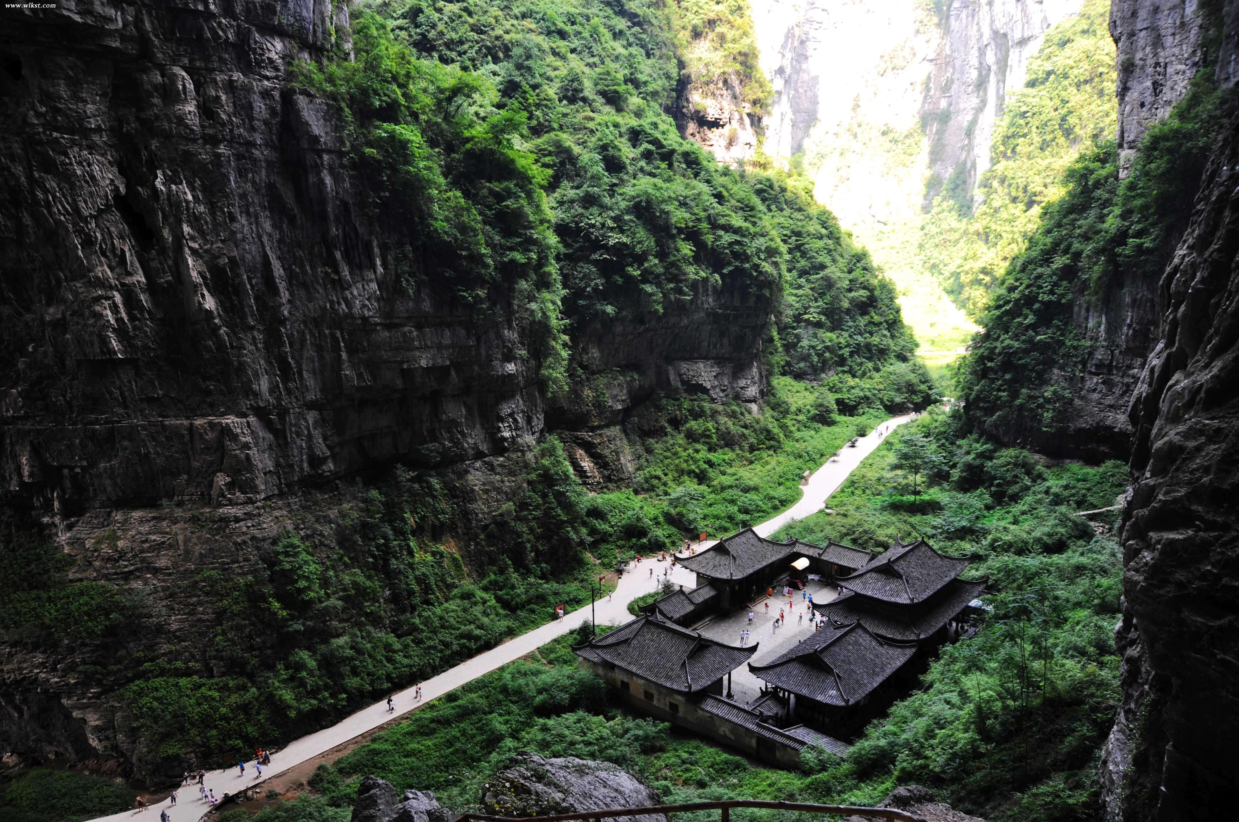 天坑和地縫是兩個景區(qū),天坑以天生三橋聞名于世,現(xiàn)有一峽兩坑三橋四洞五泉,又有人文景觀古官驛。