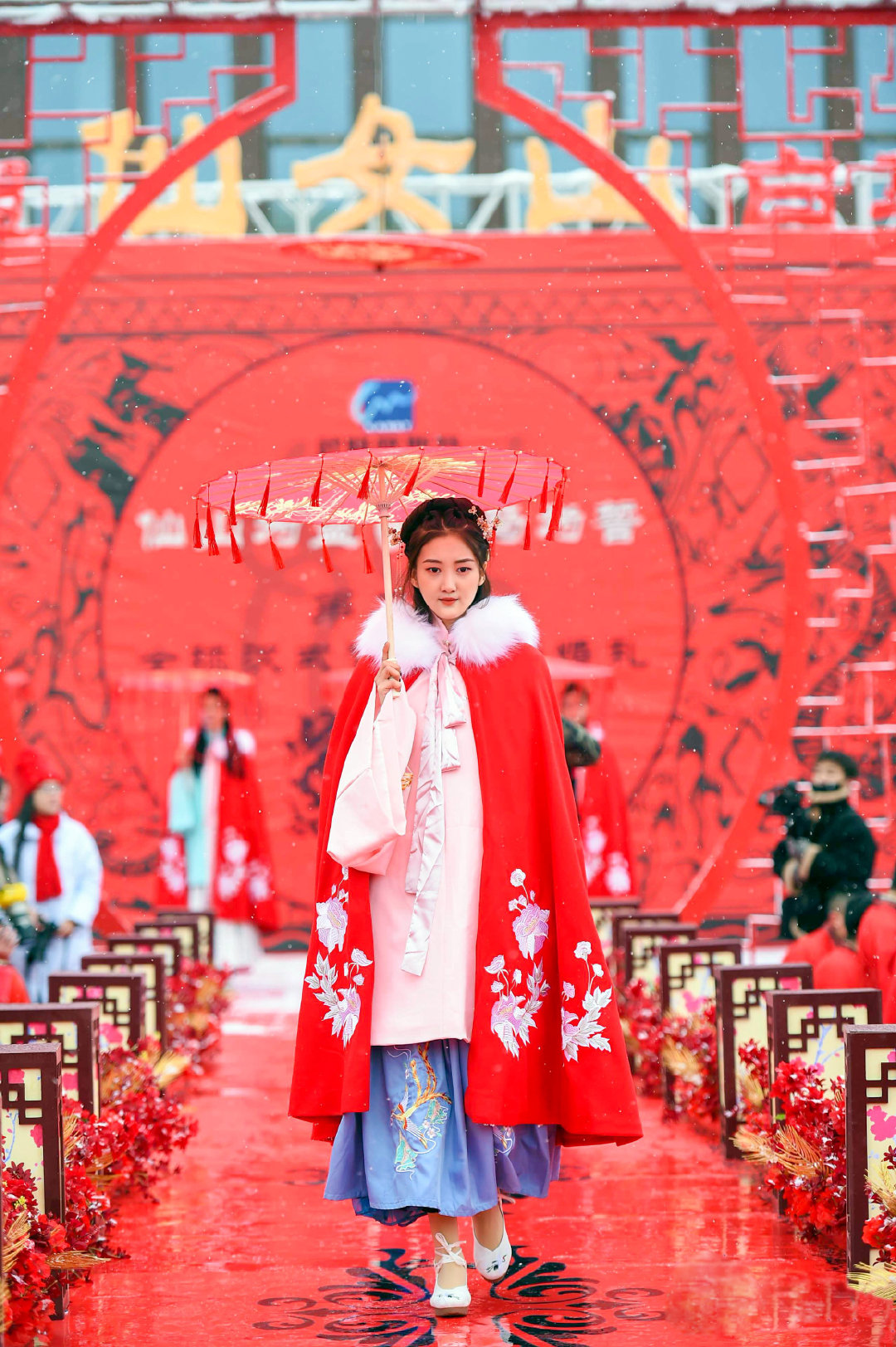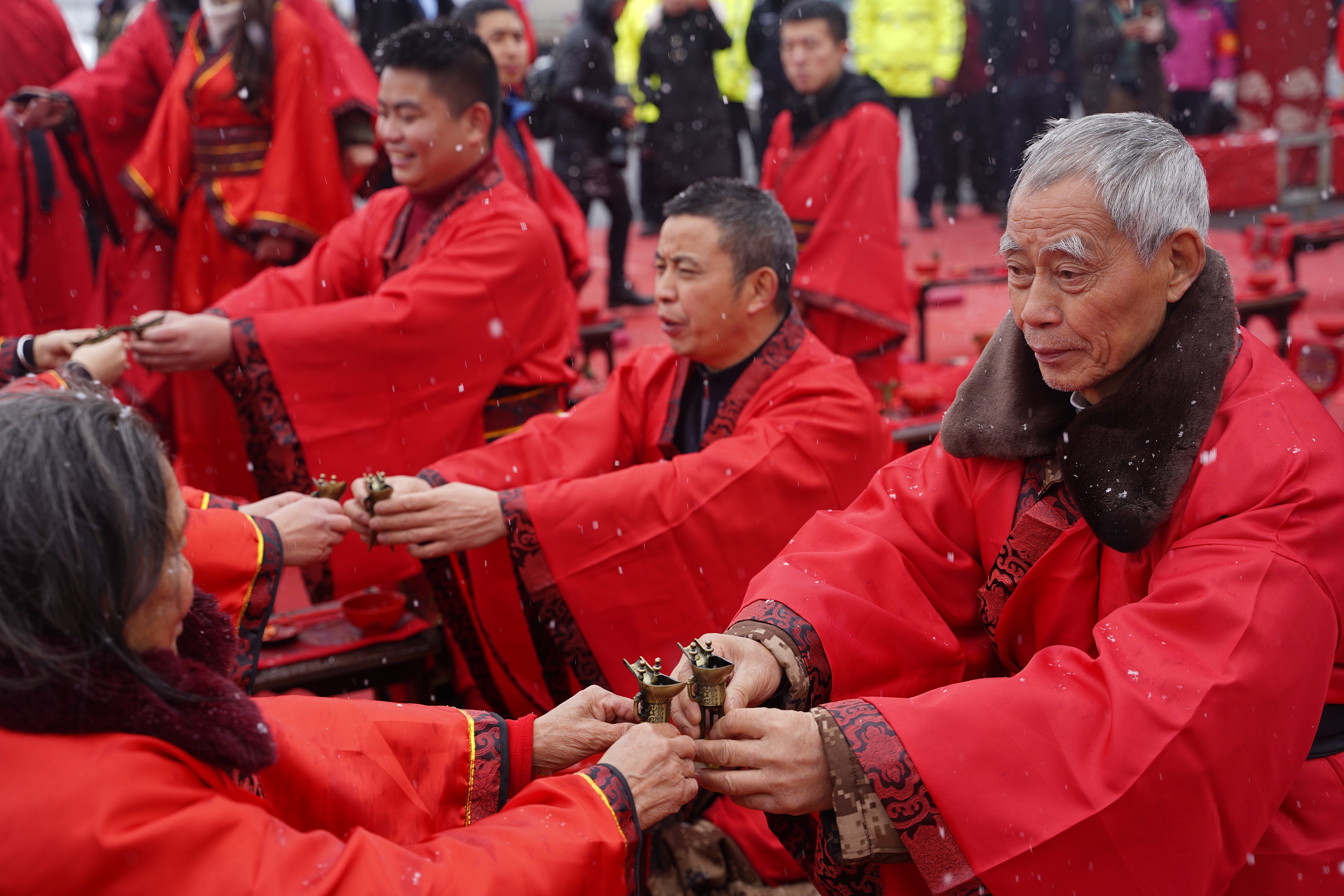 武小仙隆小馬作見證,99對新人舉行漢式雪地集體婚禮