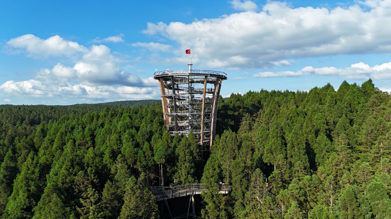 從另一個(gè)維度感受仙女山之秋——踏上“樹頂漫步”。行走于凌空棧道,穿梭在彩林之巔,俯瞰金黃與緋紅交織的林海,與掠過枝頭的鳥兒并肩。