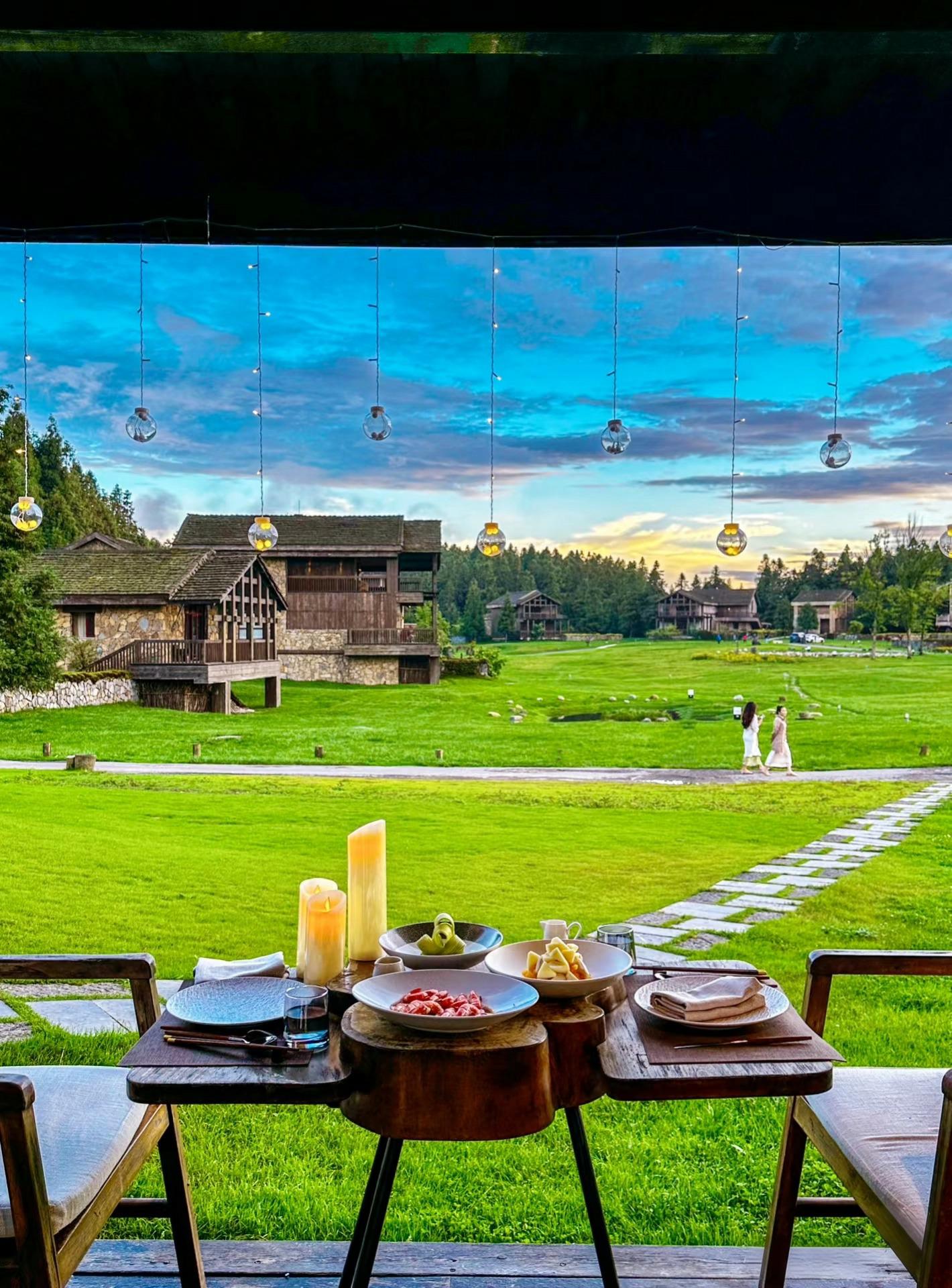在草原尋一處小棧,捧一杯熱咖啡,靜候夕陽。當(dāng)霞光浸染天際,從林間到草甸,一日看盡兩種秋色,愜意非常。