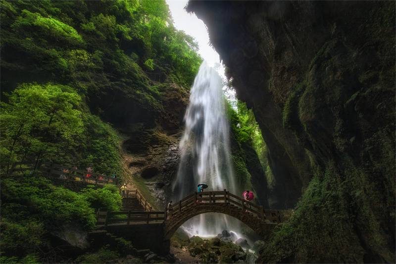 深入地球的清涼脈絡(luò),聆聽一首流水雕刻的秋日散文詩。偶有陽光從縫間傾瀉,照亮飛濺的水珠,化作剎那彩虹。