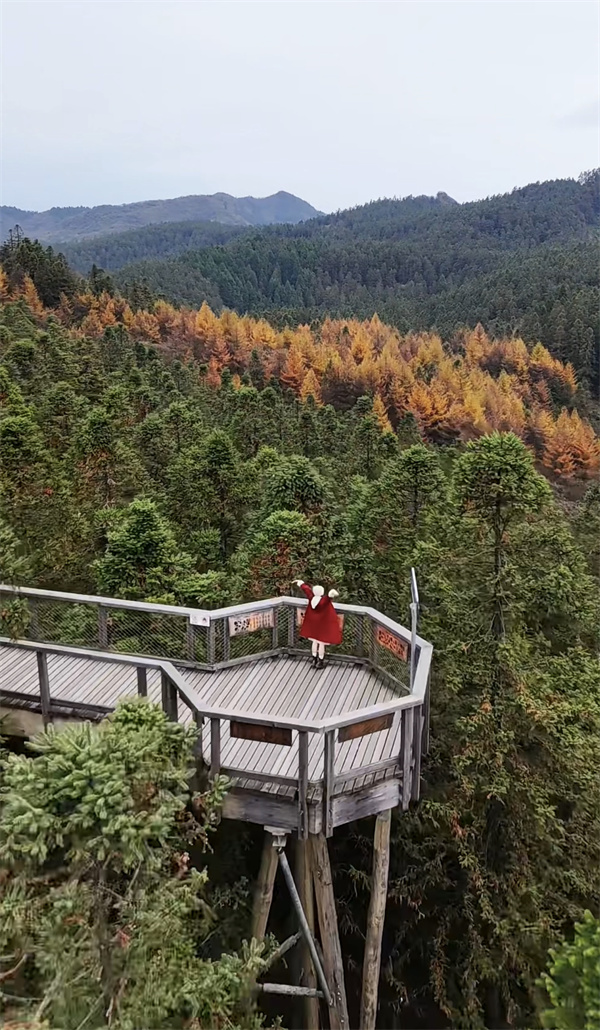 午后轉(zhuǎn)往仙女山草原。秋日草色金黃,可登高“樹頂漫步”遠(yuǎn)眺林海,或搭乘觀光小火車穿梭草原,沉浸于融融秋意。