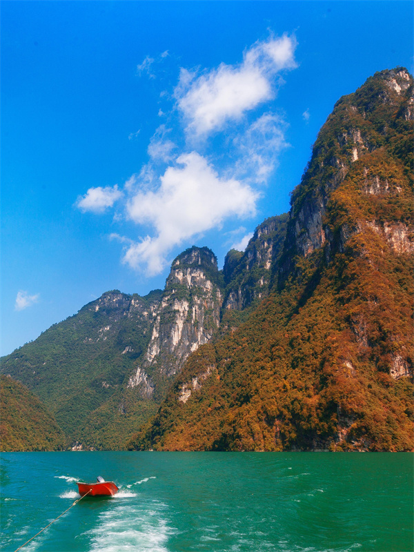 隨后探訪芙蓉江,乘舟行于碧波之上,兩岸絕壁疊翠,秋色浸染,倒影成畫。