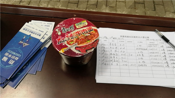 世紀(jì)廣場(chǎng)的鑫棧超市工作人員,看到志愿者早中晚都是面包+泡面+牛奶,看在眼里,十分心疼,主動(dòng)為志愿者提供開水、桌凳等支援管控服務(wù)。