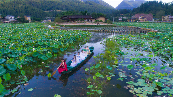 走進(jìn)大田濕地人家,碧綠的荷葉,粉嫩的荷花,滿眼都是夏天的景色。游人們?nèi)宄扇海蜓睾斡^荷賞荷,盡享田園風(fēng)光;或乘坐小葉輕舟,置身于荷葉花海之中,近距離感受“接天蓮葉無窮碧,映日荷花別樣紅”的古韻。如此美景給“沿著高速看中國·重慶”采訪組的媒體記者們留下了深刻印象。