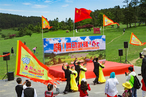 ?。▓D/王俊杰)將舞臺搬到大自然,通過舞姿展現(xiàn)積極向上的生活態(tài)度。6月4日,武隆仙女山景區(qū)陽光明媚,晴空萬里。以“千年長安·印象武隆”為主題的舞動武隆2021年千人才藝大賽,在仙女山大草原隆重舉辦。來自陜西西安的文藝愛好者,不惜驅車上千里抵達重慶仙女山,開展了一場別開生面的文藝表演大賽。