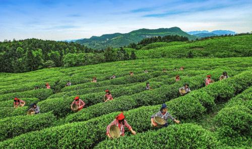 “應(yīng)時飲茶最養(yǎng)人,春游出行正當時”,新春已至,春芽已經(jīng)冒頭,正是品茗好時節(jié)。白馬山仙女紅明前茶進入采摘期,漫山的茶園翠色欲滴,寫滿了綠意,連空氣里都是清冽的茶香。海拔1300米的白馬山天尺茶區(qū)正處在重慶武隆的T字型小氣候區(qū)域中,頻繁驟變的溫差使得這里產(chǎn)出的茶葉內(nèi)質(zhì)物更為豐富,呈現(xiàn)出獨特的香氣。