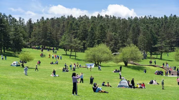 六月的仙女山,滿眼都是郁郁蔥蔥、生機(jī)勃勃的景象,正是旅游好時(shí)節(jié)。走進(jìn)擁有30萬畝林海和20萬畝草原的仙女山大草原,放眼望去,綠茵茵草原一片連著一片,隨著山坡上下起伏,延綿不絕,像一條無邊的綠地毯。游客們來到這里,瞬間就被美麗的風(fēng)景所吸引,大家或拿起相機(jī)記錄這美好的時(shí)刻,或手牽手漫步在草原,享受難得的休閑時(shí)光。