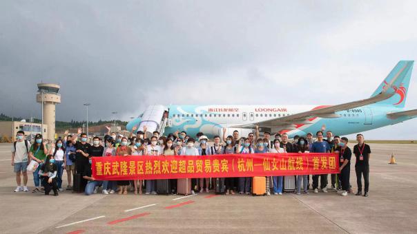 6月26日,由長龍航空執(zhí)飛的“杭州—武隆”GJ8559航班,搭載著50余名乘客平穩(wěn)降落至仙女山機(jī)場,這也是武隆仙女山機(jī)場順利復(fù)航后的第二趟航班!