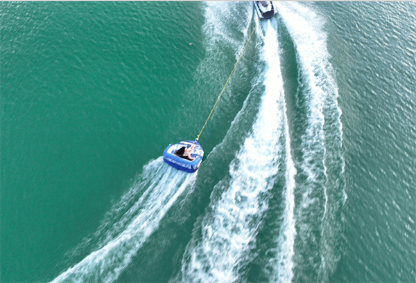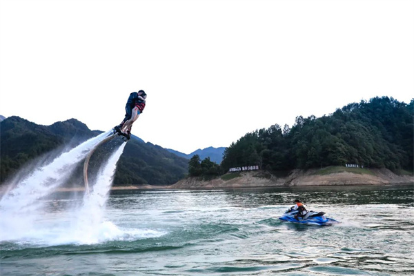 摩托艇、水上飛人、電動(dòng)滑板、快艇、槳板、香蕉船、皮劃艇、水上沙發(fā)...競(jìng)技與休閑結(jié)合,既能追求馳騁江面的刺激,也能享受青山綠水間的悠閑時(shí)光。