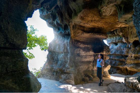 浩瀚宇宙隨著時光變遷,地殼運動,水流下沉。如今,這里早已是一片生機勃勃的陸地,而這塊巖石也變成了此處的制高點。七洞門左側(cè)懸崖絕壁,右側(cè)茂林密布。山間涼風(fēng)從懸崖一側(cè)緩緩飄進洞門,洞內(nèi)清涼無比。