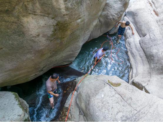 “不要選擇熱天(夏天),秋冬蛇上山了再去嘛!”去不到黃鶯大峽谷,我們選擇了黃鶯鄉(xiāng)挨著不遠的一個不知名峽谷,那里緊鄰公路,一條山間小溪自然流淌,安全性高,特別適合溯溪玩水。