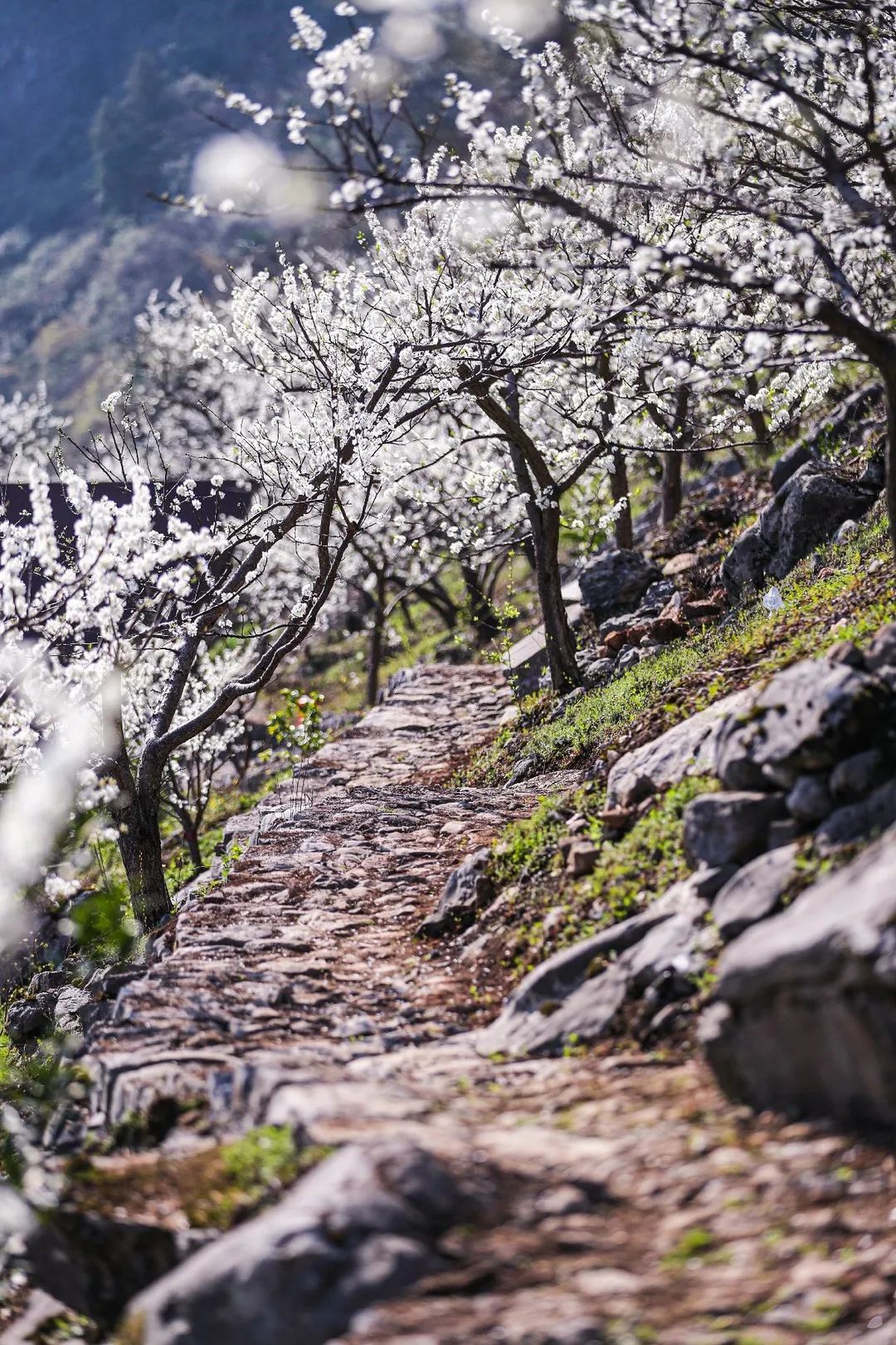 漫山遍野的李樹花開正艷