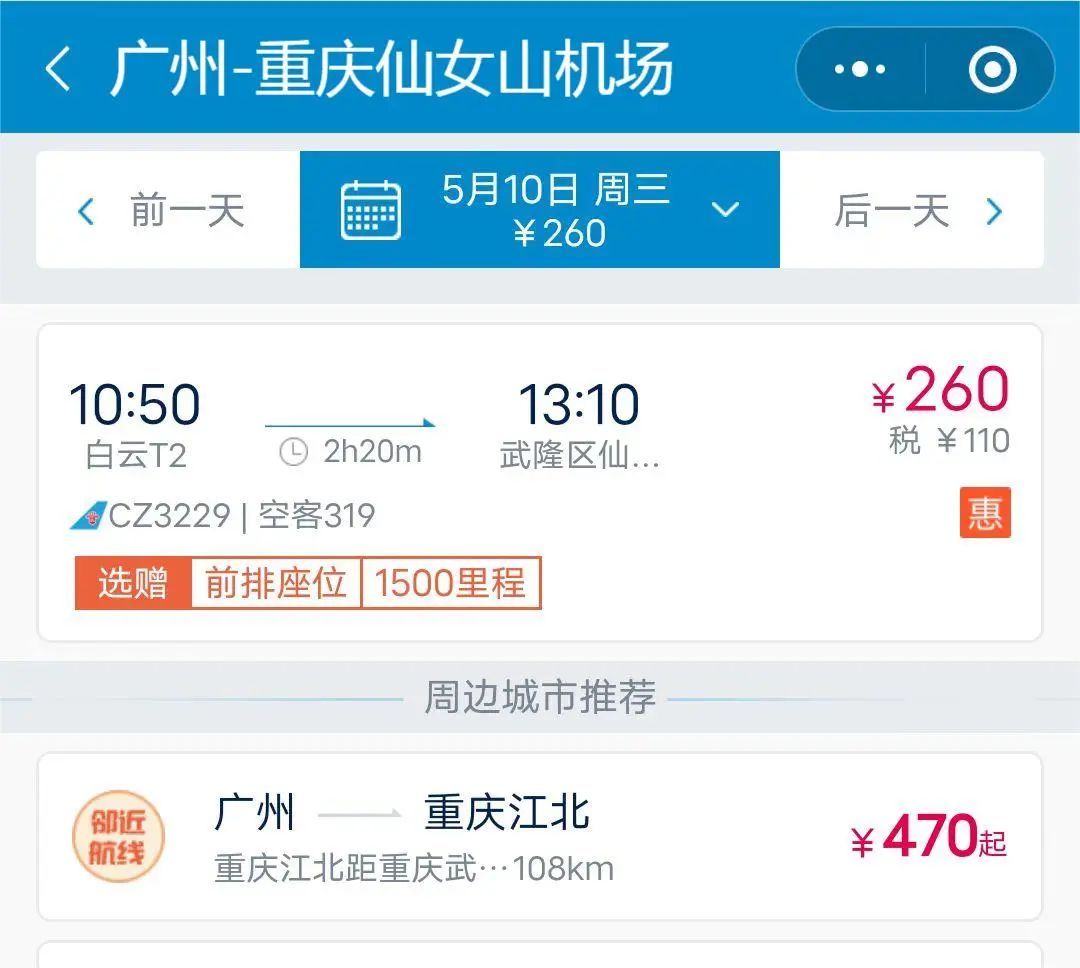 5月10日,重慶仙女山機(jī)場將開通廣州=重慶仙女山航線,現(xiàn)已開艙售票,前幾班票價(jià)僅260元(不含稅)。
