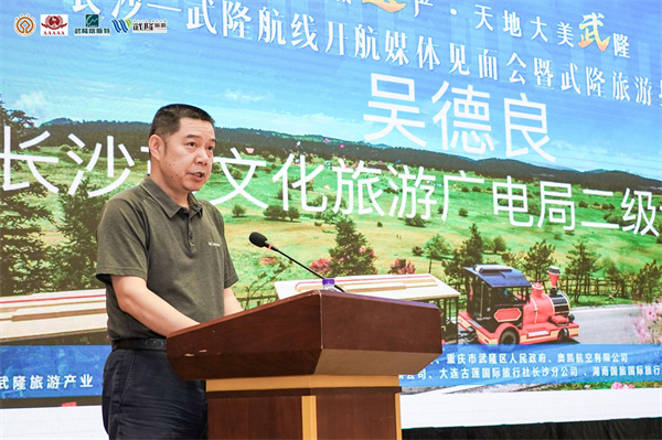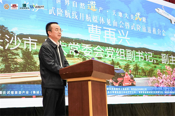 長(zhǎng)沙市人大常委會(huì)黨組副書記、副主任曹再興在致辭中表示,隨著“長(zhǎng)沙-武隆”直飛航線的開通,未來兩地的聯(lián)系會(huì)更為密切,武隆的美景美食、武隆的熱情好客,會(huì)讓沒有到過武隆的長(zhǎng)沙市民走進(jìn)武隆、感知武隆,會(huì)讓到過武隆的長(zhǎng)沙市民再次走進(jìn)武隆、體驗(yàn)武隆、愛上武隆,同時(shí)也歡迎武隆的市民常來長(zhǎng)沙做客。
