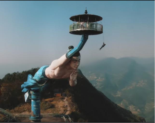 在電影中,硬漢吳樾前期看似“廢柴”,為救被綁架的女兒超強戰(zhàn)力附身,逆風翻盤超燃虐渣。特別是在白馬山飛天之吻那場戲,吳樾被綁架,懸掛在1300米高的烏江懸崖邊上,武力值爆表的他上演極限自救,驚心動魄的場面成為該電影的一大看點。