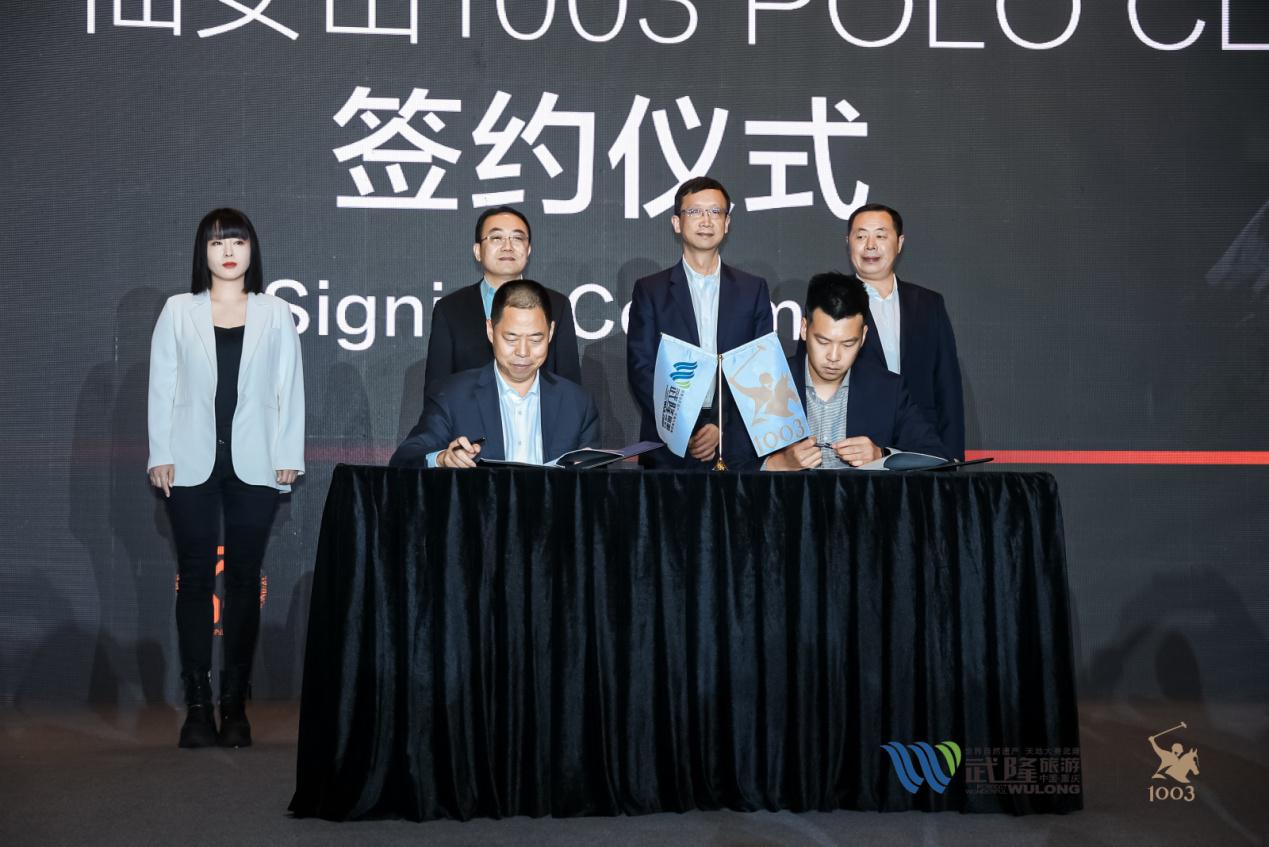 在現(xiàn)場領(lǐng)導(dǎo)和嘉賓的見證下,重慶武隆旅游產(chǎn)業(yè)(集團(tuán))有限公司總經(jīng)理劉波與1003 POLO全球代表王戰(zhàn)完成項(xiàng)目簽約儀式。