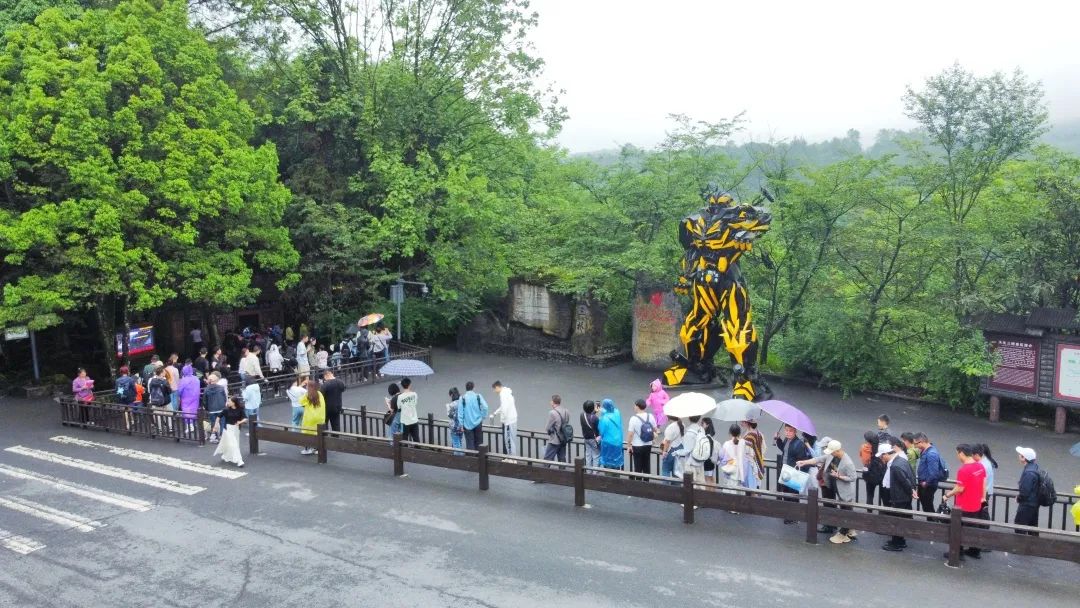 在天生三橋景區(qū),記者看到,天空下起綿綿細雨,前來游覽的游客絡繹不絕,游客們井然有序排隊進入景區(qū),在蜿蜒的景觀小路上行走,宛如身在畫境之中,絕美的景色也吸引游客們爭相拍照留念,在欣賞美景的同時感嘆大自然的鬼斧神工。