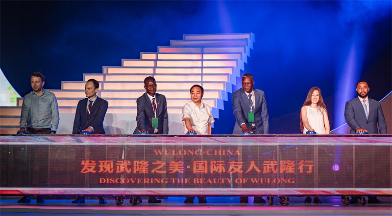 隨后,馬里、津巴布韋、阿爾巴尼亞、希臘、巴哈馬、北馬其頓等六國外賓,與武隆區(qū)委常委、區(qū)政府常務(wù)副區(qū)長劉高永共同為“發(fā)現(xiàn)武隆之美·各國外賓武隆行”揭幕。憑借著優(yōu)勢的旅游資源和創(chuàng)新出彩的文旅融合,在會上,武隆還被中國文化管理協(xié)會授予“中國文化管理協(xié)會文旅融合創(chuàng)新示范基地”稱號。