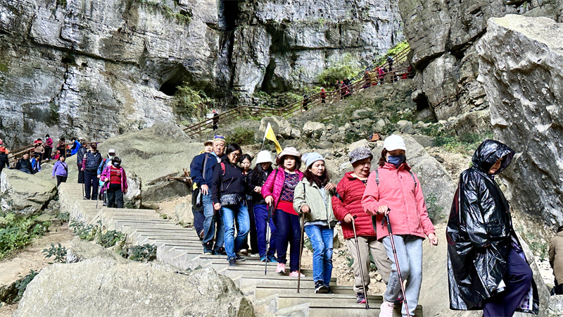 10月27日,被譽為“亞洲最大天生石橋群”的天生三橋景區(qū)煙雨蒙蒙、仙氣十足。各種旅游團陸續(xù)走進景區(qū),特別是來自河南750人旅游專列尤其備受矚目。由近20輛大巴車組成的車隊,浩浩蕩蕩的駛入景區(qū),神奇壯觀的世界自然遺產(chǎn)風光,完善的配套設施和良好的服務水平,讓游客們陶醉忘返。