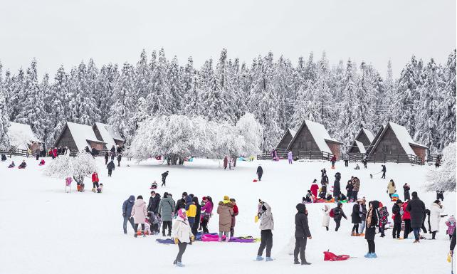 茫茫草原林海秒變仙境,白雪覆蓋的房屋變成城堡!被雪花加持的仙女山每天都迎來大批游客涌入打卡,玩雪戲雪、堆雪人、打雪仗、拍照留影,景區(qū)到處到處呈出人聲鼎沸、熱鬧非凡場面。憑借超高人氣,仙女山國家森林公園多次登上微博重慶地區(qū)“人氣地標榜”,位列榜首。