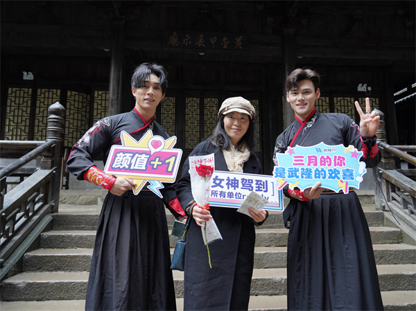 在天生三橋景區(qū)內(nèi),居然還有185+男神在此陪游客們過節(jié),男神們在天福官驛,以限定俠客裝扮帶來了精心設(shè)計的心動互動項目,以魅力十足的外表和專業(yè)的服務(wù)技能為游客帶來全新的過節(jié)體驗,無論是和游客合影、壁咚、公主抱還是贈送鮮花、彩票等小禮物,這些小驚喜都是男神們?yōu)榫皡^(qū)游客所精心準(zhǔn)備的,看著現(xiàn)場的游客朋友眉飛色舞、撫掌大笑就能感受到他們的開心,感受到景區(qū)的用心!