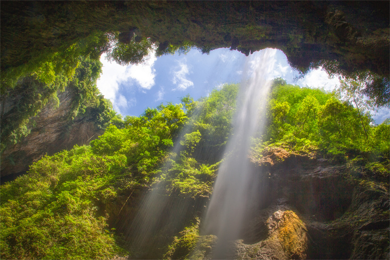天生三橋景區(qū),大自然鬼斧神工之杰作,其壯麗的自然風(fēng)光使之備受影視劇的青睞,是《變形金剛4》、《滿城盡帶黃金甲》、《爸爸去哪兒2》等的拍攝地。隨著氣溫漸漸變暖,天生三橋景區(qū)野生梨花、櫻花次第綻放,滿園春色。玉樹蔥蔥、鳥語花香下的三橋夾兩坑壯觀景色,是相機(jī)無法拍攝出的,唯有親身體驗(yàn),用心才能感受磅礴的氣勢(shì)。
