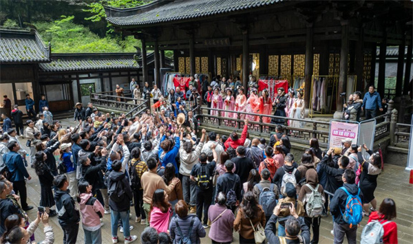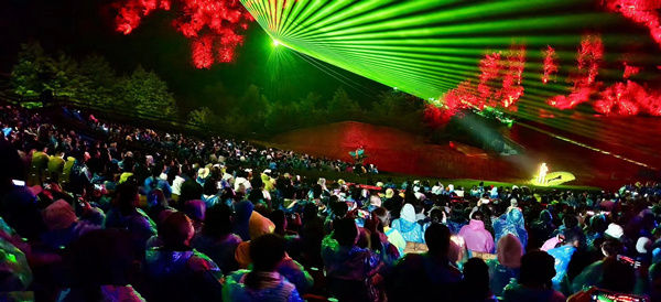 與此同時,今年五一期間,以國家非物質(zhì)文化遺產(chǎn)“川江號子”為主題的大型山水實(shí)景演出“印象武隆”也是場場爆滿,備受游客朋友青睞。晚上8點(diǎn),在喀斯特地貌形成的天然劇場內(nèi),游客坐在落差200米的峽谷里,聆聽非物質(zhì)文化遺產(chǎn)“川江號子”,感受跨越千年的民俗文化。