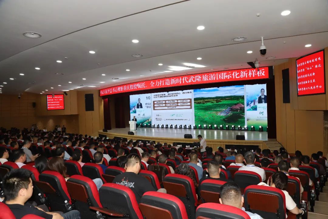 聯(lián)合國世界旅游組織旅游大使、原執(zhí)行主任、副秘書長,國家旅游局原副局長祝善忠圍繞武隆旅游發(fā)展經(jīng)驗作交流發(fā)言,市文化和旅游發(fā)展委員會正廳局長級干部劉旗作為1994年至今歷任武隆(四大家)主要領(lǐng)導作代表發(fā)言,攜程集團副總裁、政府合作部總經(jīng)理張旭圍繞武隆旅游發(fā)展經(jīng)驗作交流發(fā)言。區(qū)委書記何慶出席并作主旨發(fā)言,區(qū)委副書記、區(qū)長左軍主持會議。