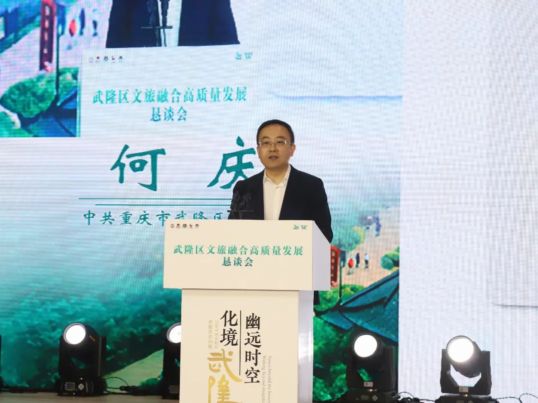 何慶在主旨發(fā)言中向出席懇談會的各位嘉賓表示熱烈歡迎。他說,武隆旅游30年的光輝歷程,是一部可歌可泣的創(chuàng)業(yè)史、是一部奮斗奮進的發(fā)展史、更是一部追夢逐夢的光榮史。30年來,我們在繼承中創(chuàng)新、在創(chuàng)新中發(fā)展,走出了一條具有武隆特色、切合武隆實際的綠色發(fā)展之路。歷屆黨委政府、廣大黨員干部和武隆兒女積極投身旅游發(fā)展,敢想敢干、實干快干,走出了一條“綠水青山”就是“金山銀山”的現(xiàn)實轉(zhuǎn)化路徑,實現(xiàn)了“農(nóng)業(yè)小縣”到“旅游大區(qū)”的華麗蛻變,“無名之地”向“度假勝地”精彩蝶變;成功開發(fā)仙女山、天生三橋、芙蓉洞等A級景區(qū)5個,收獲世界自然遺產(chǎn)、世界最佳旅游鄉(xiāng)村、國家級旅游度假區(qū)、國家全域旅游示范區(qū)、國家5A級旅游景區(qū)、國家生態(tài)文明建設示范區(qū)、綠水青山就是金山銀山實踐創(chuàng)新基地、國家食品安全示范城市等品牌榮譽,被聯(lián)合國授予“可持續(xù)發(fā)展城市范例獎”;全力構(gòu)建“公鐵水空”立體交通網(wǎng)絡,渝湘高鐵、白馬航電樞紐、武兩高速等加快推進,仙女山機場建成通航,群眾出行更加便捷通暢,探索形成景區(qū)帶動、廊道帶動等富民增收模式,全區(qū)10萬余群眾吃上“旅游飯”。