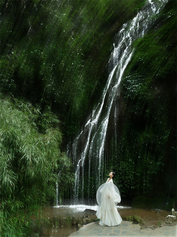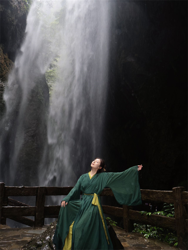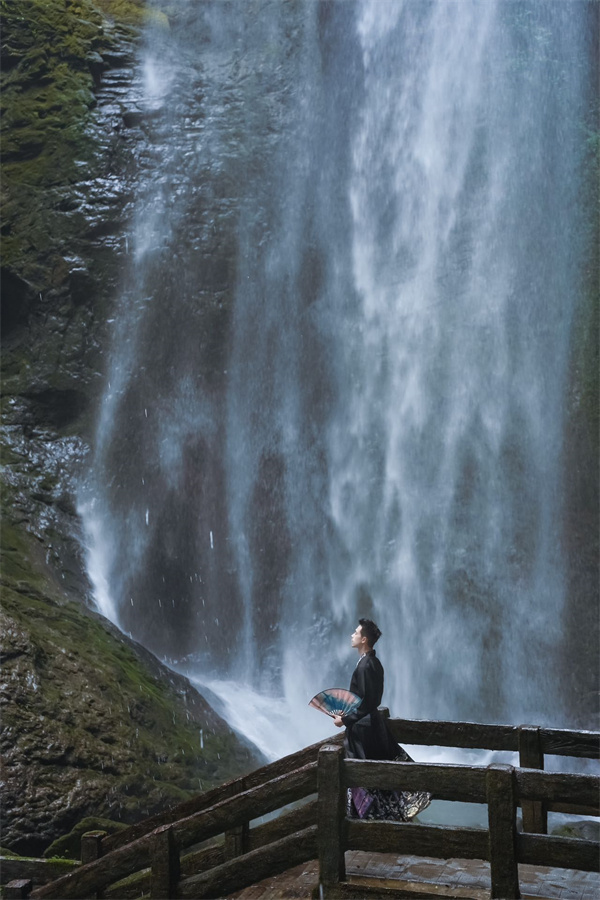 看龍水峽地縫銀河飛瀑傾瀉,乍以為是銀河從天上落下,彌漫飄灑在半空中。一襲青衣,淋了一場(chǎng)雨,背靠山水,在層疊蒼翠之間,讓自己和植物一樣被滋養(yǎng)。仿佛能夠感受到江湖中的恩怨情仇,感受到那些傳說(shuō)中的英雄豪杰的英勇與不羈。