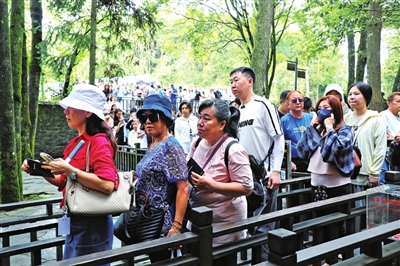 排隊有序進(jìn)景區(qū)。(張再行/攝)