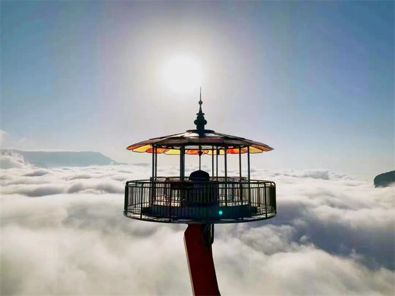 被譽(yù)為“愛情治愈圣地的”白馬山天尺情緣景區(qū),海拔1200米,空氣清新,是避暑納涼、休閑度假的必選之地。其中,火爆全網(wǎng)的飛天之吻是景區(qū)特色亮點,白馬山與仙女山隔江相望,這里就是民間流傳千年的白龍馬與青衣仙女的愛情故事的起源。飛天之吻就是以白龍馬與青衣仙女的形象打造,一雙機(jī)械臂3分鐘可上升54米,在高空定格接吻,形成飛天之吻的景象。飛天之吻下方有一座寶石一樣的建筑就是8D影院,影院中是一塊360度的環(huán)形屏幕,而且影片場景中的氣味、煙雨、震動、光效等效果都能感受到,從而使傳統(tǒng)的靜態(tài)觀影變成了動態(tài)參與,給觀影者身臨其境般的感受白龍馬與青衣仙女的愛情故事。