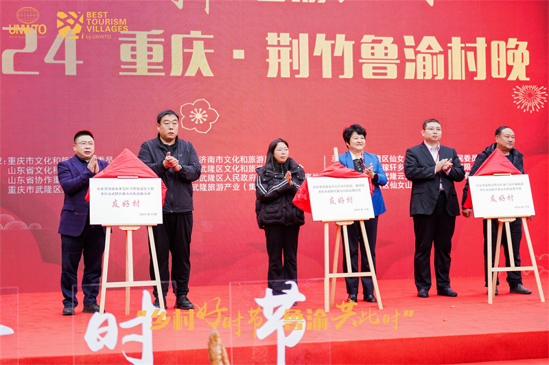 文旅互鑒,合作共贏。11月11日至12日,“鄉(xiāng)村好時節(jié) 魯渝共此時”2024重慶·荊竹魯渝村晚,在重慶武隆荊竹村歸原小鎮(zhèn)隆重舉行,來自山東省十六地市文化和旅游局相關(guān)領(lǐng)導(dǎo)、旅行社代表、鄉(xiāng)村旅游負(fù)責(zé)人、重點旅游景區(qū)度假區(qū)代表團(tuán)、榮譽(yù)村民代表等210余人出席活動,推動魯渝協(xié)作走深走實。