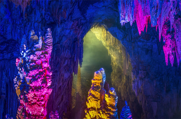 芙蓉洞,這座位于重慶市武隆區(qū)江口鎮(zhèn)的大型石灰?guī)r洞穴,形成于第四紀(jì)更新世,距今約120多萬年前 ,發(fā)育在古老的寒武系白云質(zhì)灰?guī)r中。洞內(nèi)鐘乳石類型豐富多樣,各類次生化學(xué)沉積巖形態(tài)琳瑯滿目,幾乎囊括了鐘乳石所有沉積類型,達(dá)30多種,構(gòu)成了目不暇接的奇幻景觀。