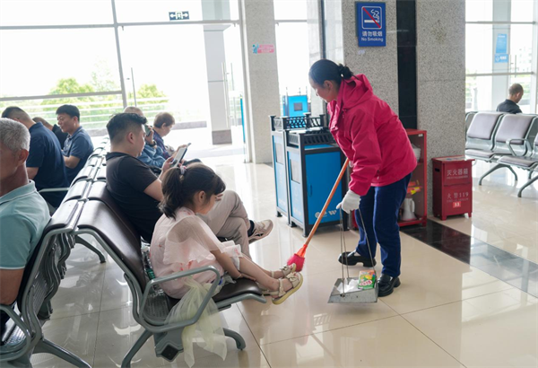 從游客接待中心到景區(qū)入口,從乘車點(diǎn)到電梯口,隨處可見工作人員熱情指引。他們主動協(xié)助老人孩子上下車、幫忙安置行李,耐心解答各種問題,讓每一位游客都能感受到 “家人般” 的關(guān)懷。